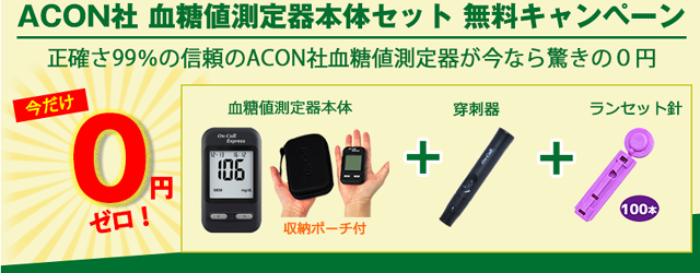 今ならACON社の血糖値測定器の本体セット無料キャンペーンを行っています。
